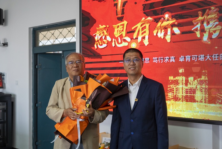 学院党委书记周长群在总结时指出,荣退教师们展示了从青涩稚嫩到鬓微霜的人生蜕变,对学院发展做出了突出贡献。他们付出的是自己对教育事业的无悔坚守和对莘莘学子的悉心呵护,收获的是三万余名师生及校友对他们的尊敬和爱戴。学院取得每一项成绩的背后都有他们的心血,这种无私奉献的精神值得每位教师传承和铭记。希望全体教师在学院发展的新时期,牢记习近平总书记关于“四有好老师”的师德标准,卓育可堪大任的时代新人。最后,他表示,学院领导班子一定会团结合作、守正创新,守护好老教师们留下的基业,同时传承“博学慎思笃行求真”的院训精神,带领学院全体师生奋进新征程,同心谱写新华章。
