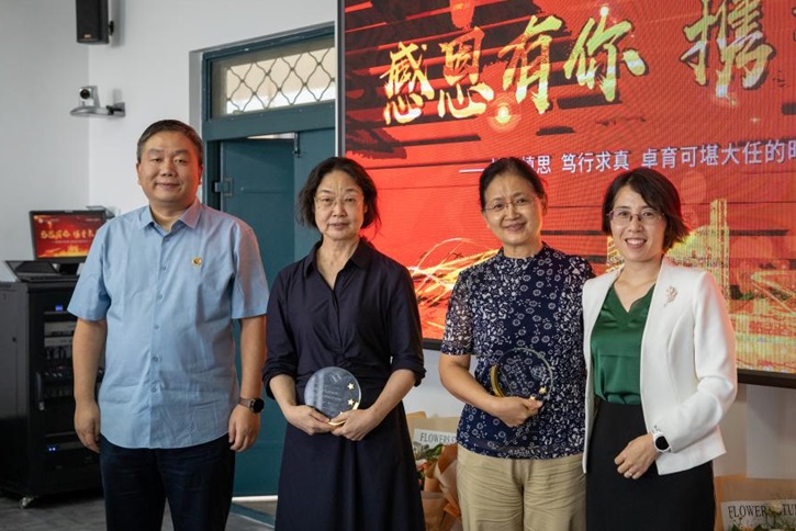 姚锋敏、王莉静副院长为郑云花、闫林凤老师颁发纪念章