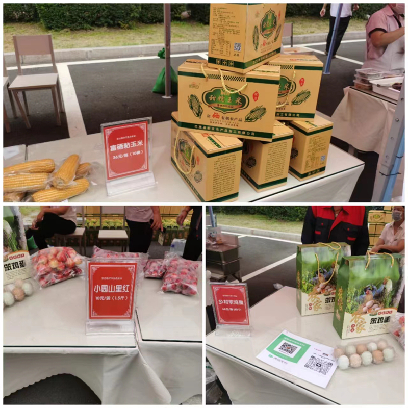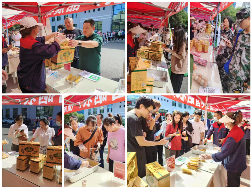 美食展销活动现场熙熙攘攘、热闹非凡,师生们对新立村的富硒粘玉米、小园山里红、笨鸡蛋、笨鹅蛋等绿色农副产品有着浓厚的兴趣,品尝后纷纷表示富硒粘玉米和山里红水果等美食口感甜糯、价格合理,并踊跃购买农副产品。在各基层工会大力支持下,教职工通过微店下单和展销活动购买了新立村各类农副产品,以消费帮扶带动新立村百姓生产增收致富。