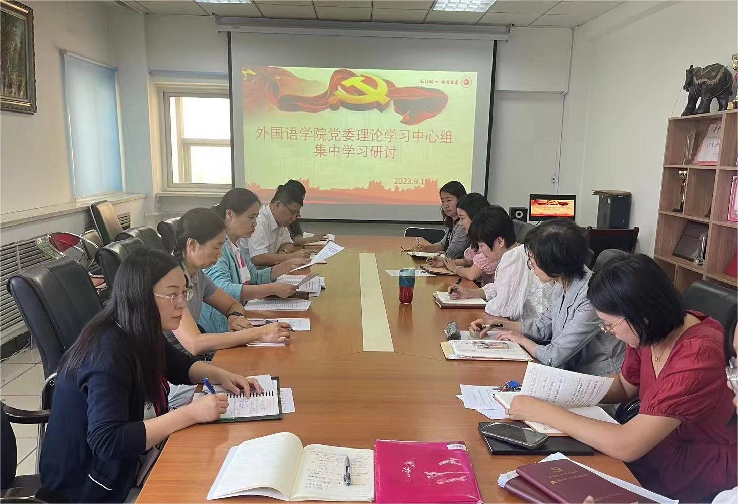 为传达好、学习好、贯彻好习近平总书记视察我省期间的重要讲话重要指示精神,9月15日,外国语学院党委在南区一号楼701会议室召开党委理论学习中心组(扩大)会议,院领导班子成员、党委委员、各教师党支部书记参加学习。