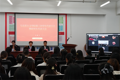 为了进一步加强团学组织队伍建设,提高团学组织在学生管理中的凝聚力和战斗力,做好新老交接,薪火相传。马克思主义学院于9月19日18:00在教学主楼E1604会议室召开了马克思主义学院第三次学生代表大会暨研究生代表大会,学院党委副书记陈迪男、学生会指导教师孙启瑞和研学会指导教师刘祥蓉参加会议,马克思主义学院全体学生以线上线下相结合的方式参加了会议。会议由马克思主义学院研究生会主席柳思为主持。