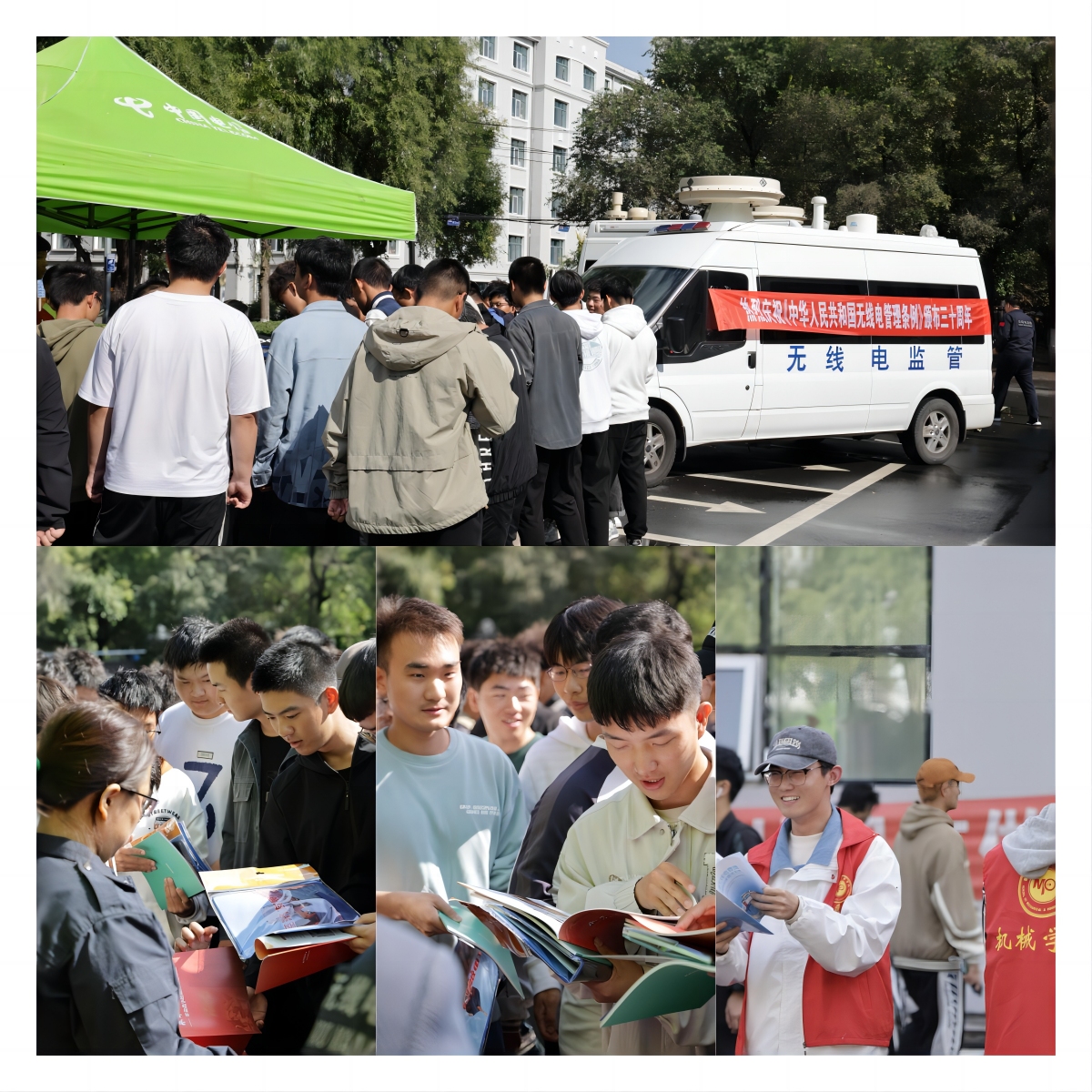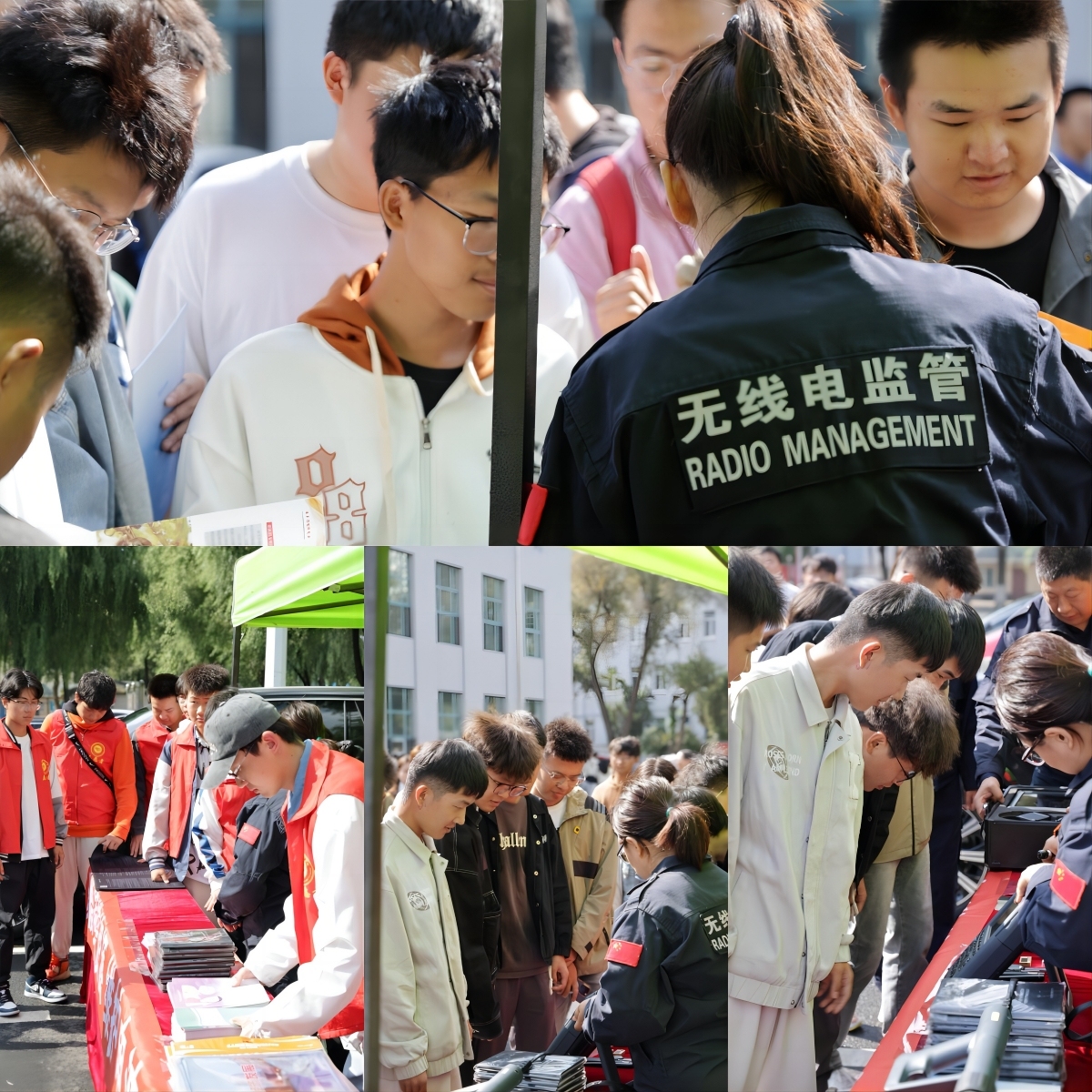 现场设立宣传台、宣传条幅,发放宣传资料及宣传品,展示可搬移无线电监测站、无线电监测、压制设备等,普及宣传无线电知识,激发广大青年对无线电的兴趣。工作人员向同学们介绍无线电法律法规知识,讲解“黑广播”“伪基站”等非法设台危害,促进广大师生防范电信网络诈骗、珍惜频谱资源。
