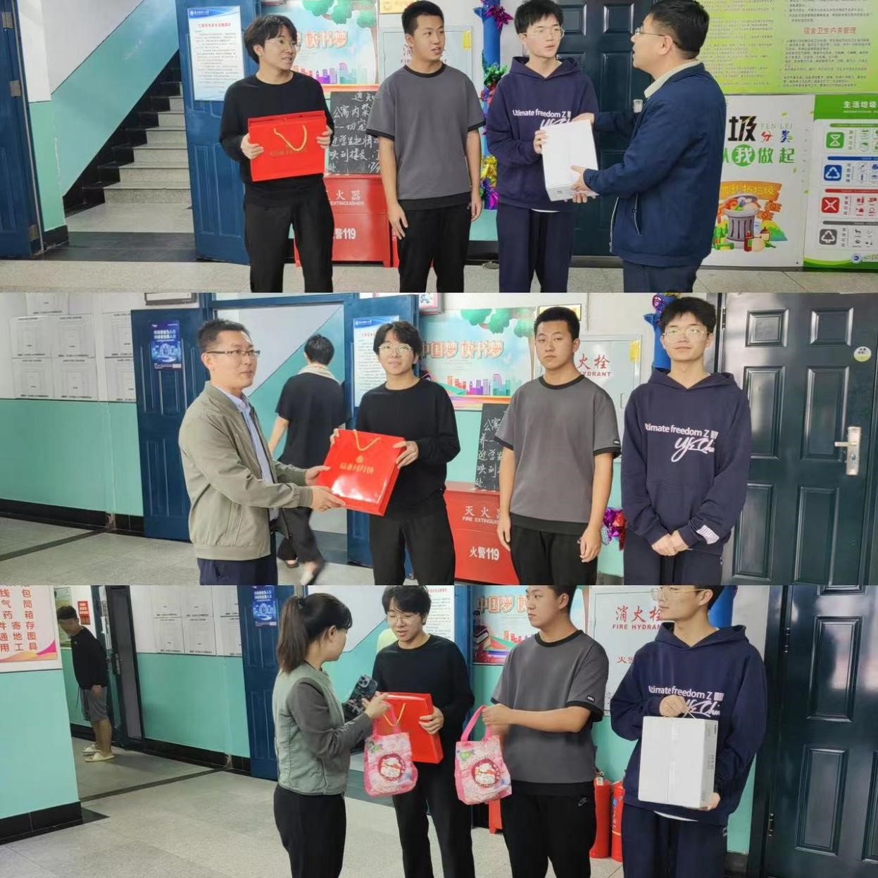 受灾学生代表纷纷感谢学校与学院老师的关心,并表示受灾后得到了学校、学院的悉心关怀,感受到如家的温暖,在今后的日常学习中,会合理安排作息,勤奋努力。同时在学习之余,积极参加学校志愿活动和勤工助学岗位等,以饱满的热情回报母校的关爱,以实际行动回报母校的期望。