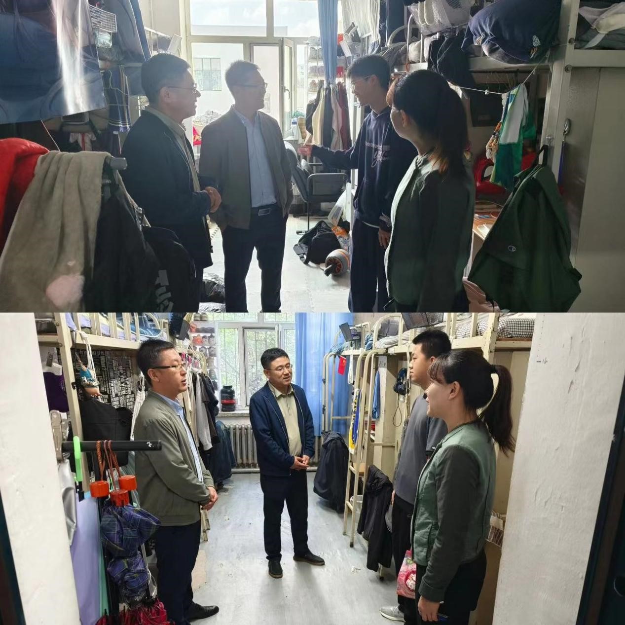 慰问中,学院领导与老师们深入受灾同学寝室,了解学生由于灾情造成的家庭困难情况。在亲切交流中,首先了解学生学习计划与安排,对毕业年级学生考研报考意向、复习进度等进行简单指导;对新生的重点、难点课程进行询问,并建议对有需要学业帮助的受灾同学建立“一对一”帮扶和指导。同时,重点询问学生生活的困难需求,学生饮食、日常用品情况,家庭成员生活情况等。院党委书记贾红宇勉励学生要坚定信念,勇敢面对当前困难,在校安心学习生活,打牢专业基础知识,深入自习室与实验室,有学习和生活困难可向学院老师反映,学院将尽力保障学生学习生活。院长胡军耐心倾听了受灾学生的家乡重建情况并送去了诚挚的慰问和劝勉,希望毕业年级学生树立正确的学习观与就业观,合理选择报考院校,积极备考,早日成功,并表示学院将一如既往地关心受灾同学,积极提供力所能及的帮助,鼓励学生坚强勇敢,相信生活会慢慢好转。