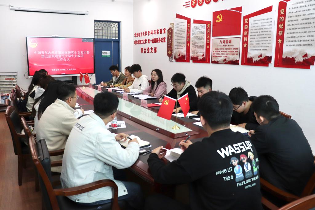 研支团团长毛亮宣读哈尔滨理工大学研究生支教团管理办法以及工作要求和注意事项。往届研支团成员分享支教经历,鼓励大家努力提升自身教育教学水平,砥砺前行。全体研支团全体成员阅读并签署中国青年志愿者研究生支教团招募协议书。