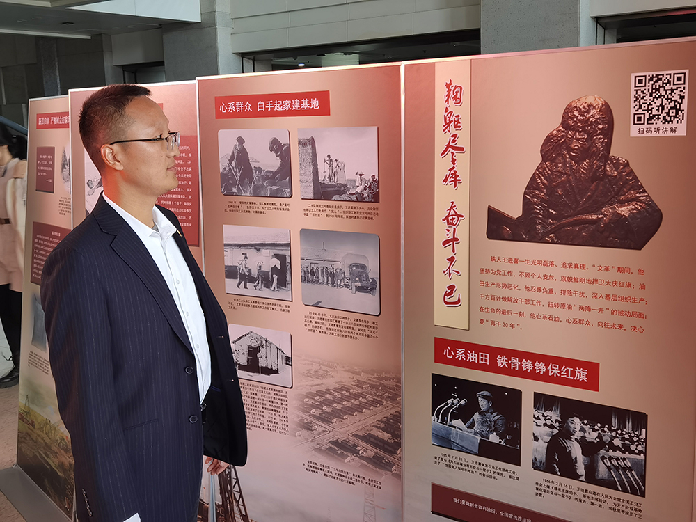 材化学院党委书记张桂玲表示王进喜不仅是工人阶级的先锋战士、共产党人的楷模,更是为国家分忧解难、为民族争光争气、顶天立地的民族英雄。吾辈要以王进喜为精神榜样,热爱祖国,艰苦奋斗,为中华民族伟大复兴而不懈奋斗。