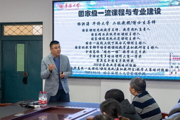 为助力国家级一流课程申报与建设,推动学院工商管理学科高质量发展,2023年10月31日上午,经济与管理学院在学校南区1号楼743会议室举办“教育部市场营销课程教学虚拟教研室”名家讲坛。本次讲坛聚焦国家级一流课程建设,学院邀请华侨大学二级教授、博士生导师、国家级教学名师、国家课程思政教学团队首席专家、霍英东全国青年教师奖获得者、教育部《市场营销》课程教学虚拟教研室带头人杨洪涛教授作为主讲嘉宾。讲坛由经管学院副院长姚锋敏主持,学院一流课程负责人参会。
