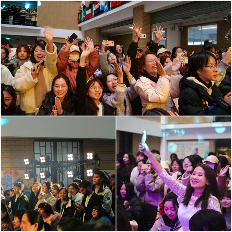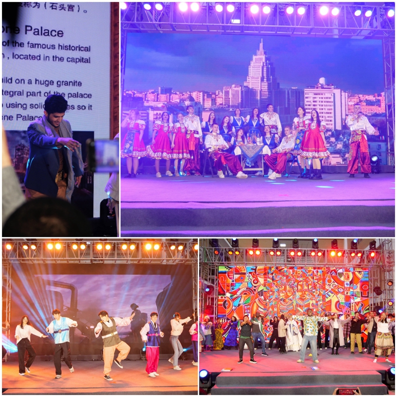 留学生和中国学生的互动燃爆现场,展现出年轻学生的青春与活力。中文歌曲串烧、俄罗斯歌舞、非洲舞蹈、韩国歌舞、场间小游戏等精彩节目让同学们流连忘返!这场文艺盛宴不仅让人陶醉其中,更让人感受到不同文化的碰撞与融合。留学生们用他们的才艺和热情搭建了一座与我国文化交融的桥梁。