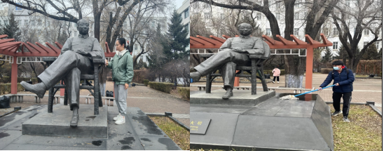 学员清扫大珩先生铜像