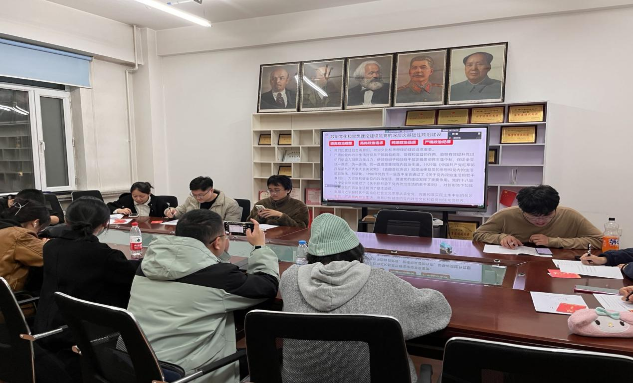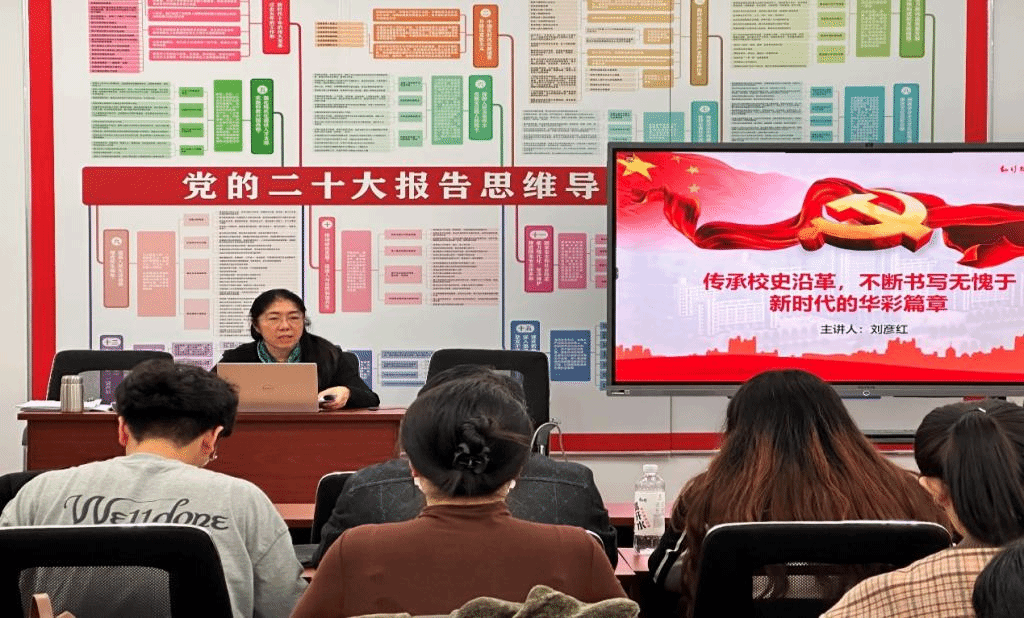 2023年10月30日18:00,马克思主义学院党委组织员刘彦红老师在新主楼1604会议室为学生、教工发展对象17人进行了“传承校史沿革,书写无愧于新时代的华彩篇章”为主题的党课培训。
