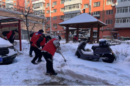 学生在铁路社区进行志愿清雪服务