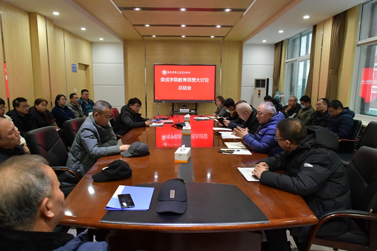 为贯彻落实习近平总书记关于教育的重要论述,落实立德树人根本任务,推进内涵式发展,提高人才培养质量,按照学校《关于开展本科教育思想大讨论活动的通知》要求,荣成学院扎实开展教育思想大讨论,于12月21日下午在办公楼二楼会议室组织召开教育思想大讨论总结会。学院党委书记尹德利、院长兼党委副书记段宏伟、副院长刘云峰、副院长沈俊峰、副书记赵运平、副院长董晶颢出席本次大会,学院教学单位负责人、职能部门负责人、教学单位教学副主任参加了会议。会议由教务办公室主任赵金涛主持。