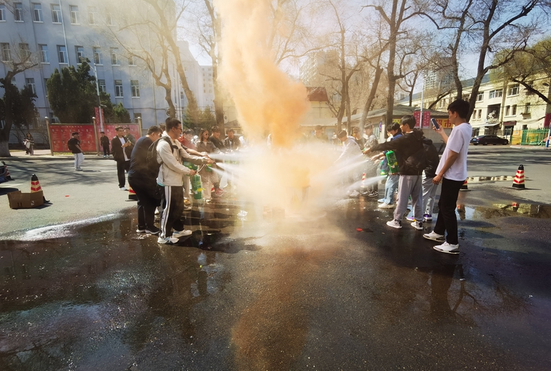 为牢记哈尔滨“4.17”火灾教训、增强消防安全意识,提高师生员工安全防范意识、自防自救及扑救初起火灾能力,保卫处于4月17日在西区一食堂门前广场开展了一场全要素、全流程的消防安全知识宣传与灭火器材实际操作演练。防火科人员、微型消防站人员、哈西消防中队人员、学生消防志愿者、校医院医护人员以及师生员工参与本次宣传演练。