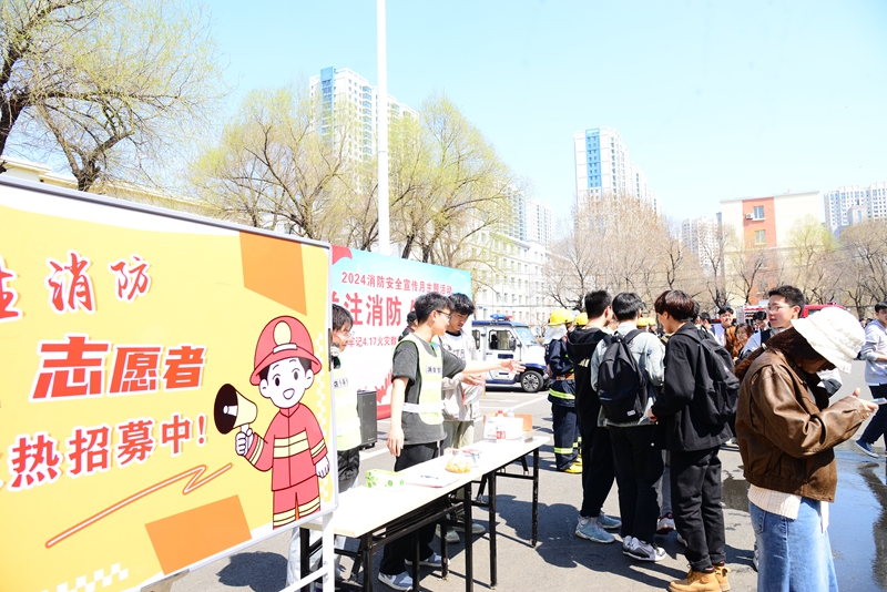 消防志愿者发放消防知识宣传单,展示志愿者形象,引导广大学生加入消防志愿者队伍,宣传消防知识,以志愿精神建设平安校园,以实际行动践行青春使命。