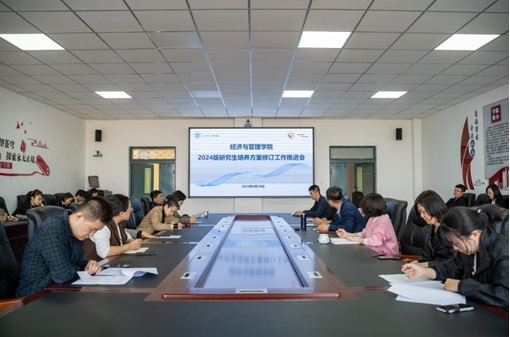 4月18日下午,经济与管理学院在南区1号楼743会议室召开2024版研究生培养方案修订工作推进会。会议由院长武建龙主持,学院领导班子成员、各学科带头人、学科方向带头人及骨干教师参加了会议。