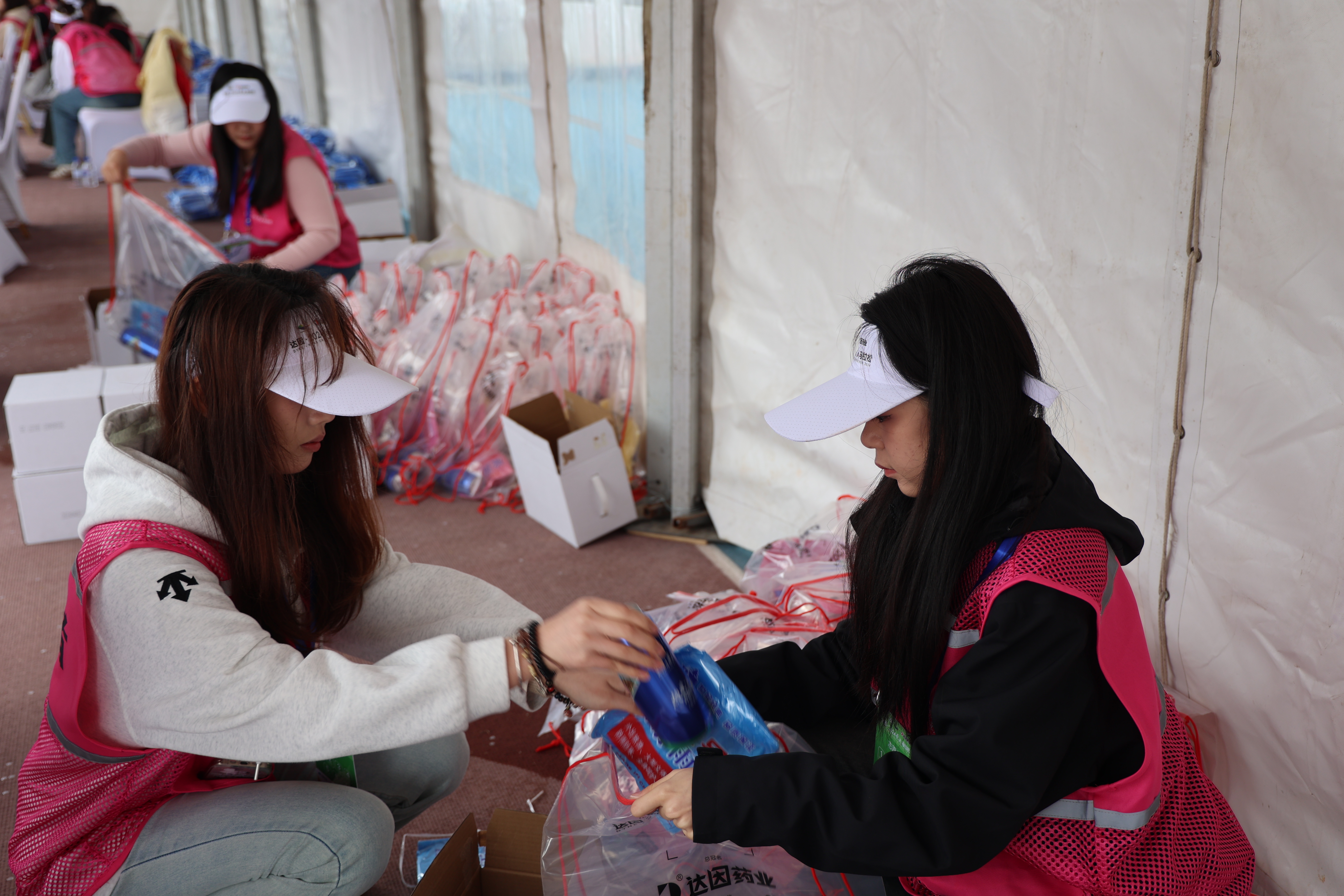 4月14日比赛当日凌晨四点半,当第一抹曙光照亮赛道,全体志愿者、啦啦队就已经在各自的岗位上整装待发。他们怀着饱满的热情和一腔的斗志,站在了比赛的最前线。志愿者们灵活分布在关键节点:存取包处、沿途监控、路线指引、清凉喷淋、现场服务与急救保障,他们犹如点缀在赛场上的璀璨珍珠,各自散发出耀眼的光芒。 此外,由学院大学生艺术团、各系啦啦队伍组成的演出团队,用活力四射、异彩纷呈的歌舞表演为选手呐喊打气,为活动助威添彩。正是这些青春的面孔、挥洒的汗水和无声的支持,共同编织成了这场马拉松盛会中让人难以忘怀的生动故事。