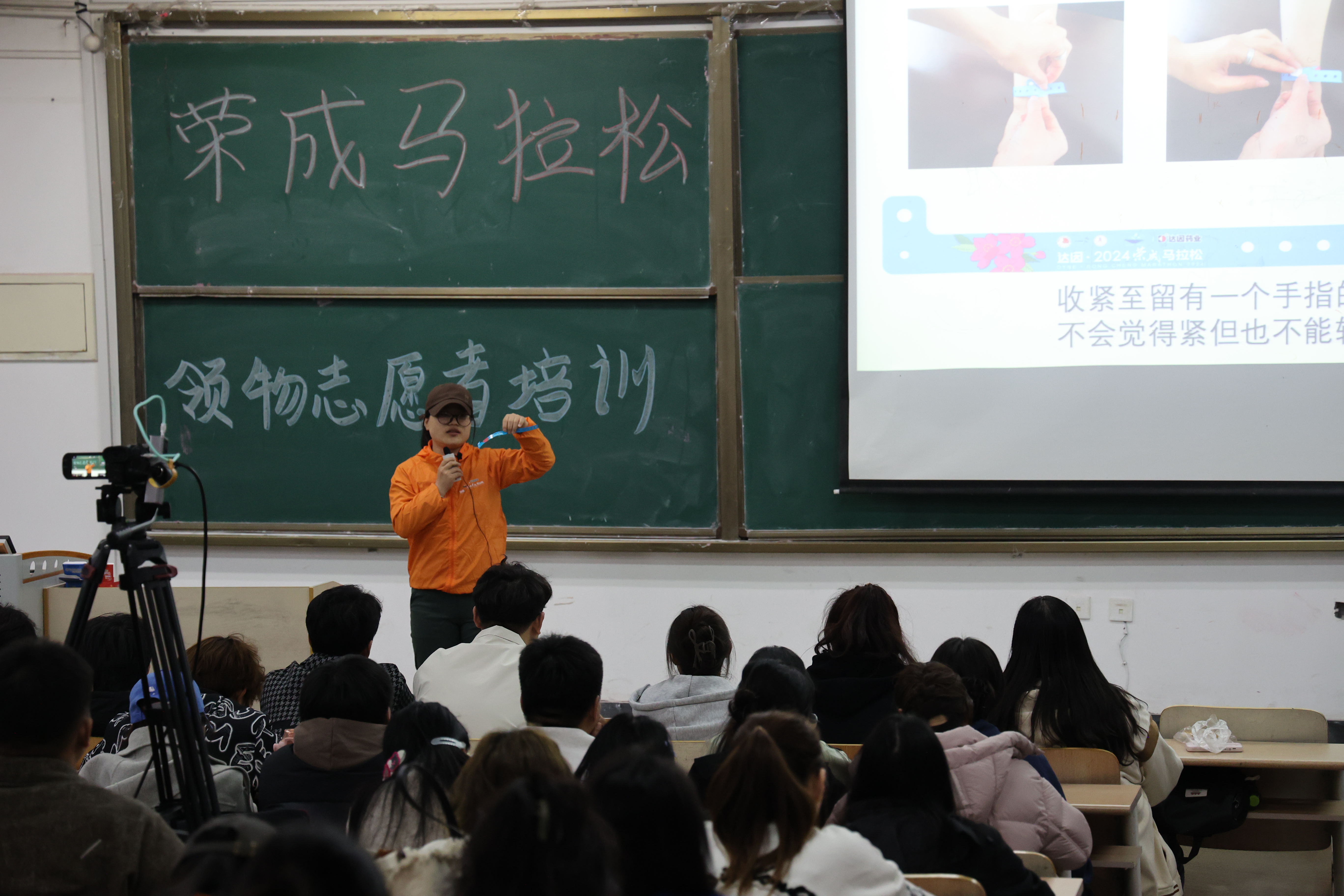 3月中旬到4月上旬赛事筹备阶段,院团委通过现场快闪演出、网络宣传阵地、校园广播等形式广泛宣传招募志愿者,前后共2160余名学生报名参与志愿服务和路演啦啦队。经过面试考核、岗位预选等形式,确定了最终名单。4月7日,马拉松组委会委托荣成市红十字会对学院150名医疗志愿者进行急救培训;9日,由组委会授课老师对学院370余名志愿者进行发物培训;11日对学院110名存取包,279名赛道观察员分场地进行存取包和赛道观察员培训。学院志愿者和啦啦队路演学生通过近一个月的刻苦努力,将最美的笑容和最完美的舞姿展现在赛场上,为荣马加油,为理工加油。