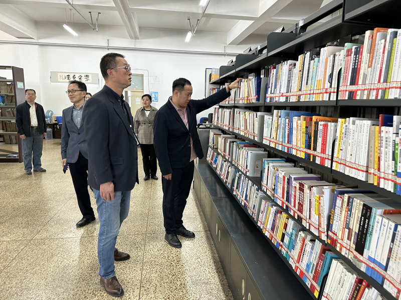 检查组一行在图书馆检查