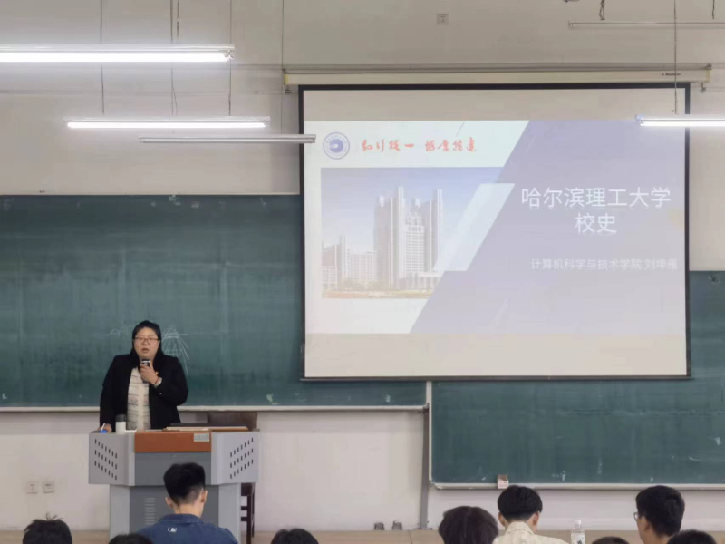 计算机学院党委副书记刘坤雁讲授“哈尔滨理工大学校史”,刘书记从哈尔滨理工大学前身开始讲起,用生动并且富有风趣的语言向各位同学描述了我们学校的历史,在最后刘书记指出新时代青年要“求发展,求进步”,要不断的学习,不负韶华,砥砺前行。