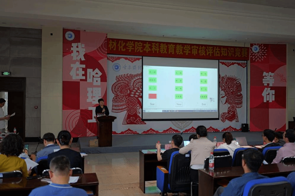 为努力营造学院迎接本科教育教学审核评估的良好氛围,加深教职员工对新一轮本科教育教学审核评估相关精神和要求进一步认识和理解,切实做好迎评各项工作。6月7日下午,材化学院在南区图书馆报告厅举行了本科教育教学审核评估知识竞赛。参加竞赛的教师队伍有:金材系、材型系、无机系、高分子系、材化系、化工系、材物系、环境系、实验中心、学院机关等十支队伍。本次竞赛采取现场竞答的形式,参赛题型分为必答题、抢答题,以及活跃现场氛围的“击鼓传花”题。