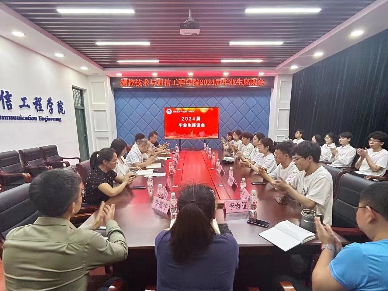 为广泛听取毕业生意见建议,助力学院内涵式建设,测通学院于2024年6月14日下午15时在教学主楼E1025召开2024届毕业生座谈会,学院党委书记黄春丽、学院院长吴海滨、各系部负责人、毕业班辅导员以及毕业生代表参与交流活动,座谈会由学院党委副书记张宏磊主持。