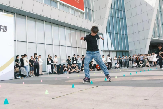 即兴花式绕桩和速度过桩比赛是最具观赏性的。花式绕桩不仅需要力量,还需要极高的技巧。运动员们将力量与技巧完美结合,每一个动作都显得那么精准和协调,让人叹为观止。速度过桩,选手们在比赛中不仅需要展现出色的速度,还要结合技巧和动作,使力量与技巧合二为一。比赛中选手们所表现出的优美动作和高超技巧,是他们长期刻苦训练的结果也是观众同学们参与轮滑运动的动力。