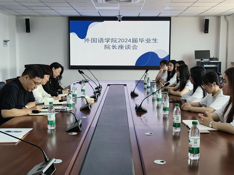 又是一年毕业季,为进一步了解毕业生的所思所想所需,倾听毕业生对学院发展的意见建议,精细化做好毕业生离校服务工作,持续提升育人质量。6月19日14时,外国语学院于南区一号楼618室召开2024届毕业生院长座谈会。外国语学院院长马艳辉、党委副书记蔡野、副院长王书蕊、2024届毕业生辅导员丁鑫博及毕业生代表参加座谈会。座谈会由学院党委副书记蔡野主持。