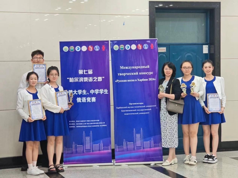 6月21日,第七届“哈尔滨俄语之春”中俄大学生、中学学生俄语竞赛正式落下帷幕。此次竞赛由黑龙江省教育厅和俄罗斯阿穆尔州科学教育部主办,哈尔滨理工大学和俄罗斯布拉戈维申斯克国立师范大学共同承办。经过2天的激烈角逐,我校代表队再创佳绩,在四个分项赛中均取得优异成绩,获得俄罗斯戏剧、俄语朗诵一等奖;俄语歌舞、俄罗斯舞蹈二等奖。