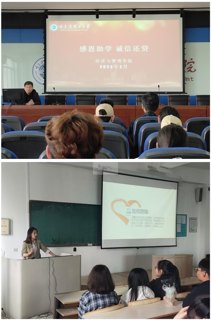 学校结合实际组织开展形式多样、内涵丰富的诚信及金融安全教育活动,增强学生诚信意识和责任意识。面向师生深入开展防范电信诈骗、非法集资以及严防“校园贷”、套路贷等教育。结合“勤学明理,笃学精工”学风建设活动、党纪主题学习教育活动等做好学生考试诚信教育。结合 2024 届毕业生离校工作做好国家助学贷款毕业生诚信还款教育活动。