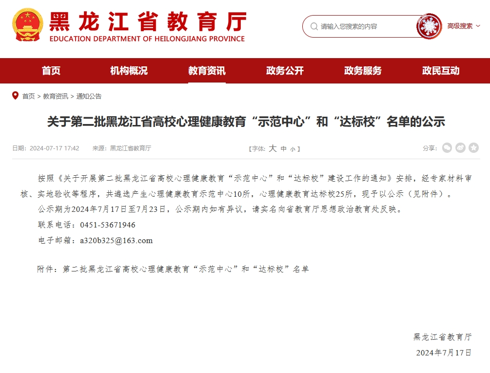 日前,黑龙江省第二批高校心理健康教育达标校名单公布,经黑龙江省高校心理健康教育评估专家组进校材料审核、实地考察和工作访谈等环节,我校成功获批黑龙江省高校心理健康教育达标高校。