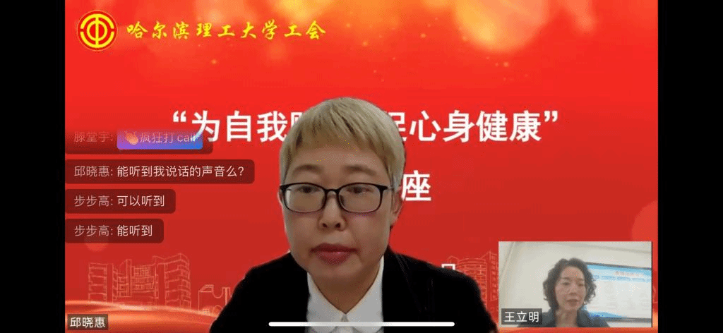 校工会邀请哈尔滨医科大学心理科学与健康管理中心专家邱晓惠教授担任主讲嘉宾。她以深入浅出的方式,从什么是健康;高校工作者工作现状分析;情绪与健康;如何自我赋能,促心身健康四个方面,全方位解读了心理健康的重要性,围绕常见心理问题的识别与应对、如何培养积极心态等核心议题展开讲解。邱教授结合丰富的案例分析和实用的心理调适技巧,让复杂的心理学理论变得通俗易懂。讲座中,邱教授特别强调建立良好生活习惯、进行有效沟通、培养兴趣爱好对于维护心理健康的重要性,并鼓励大家在面对生活压力时,要勇于寻求专业帮助,及时调整心态,保持积极向上的生活态度。