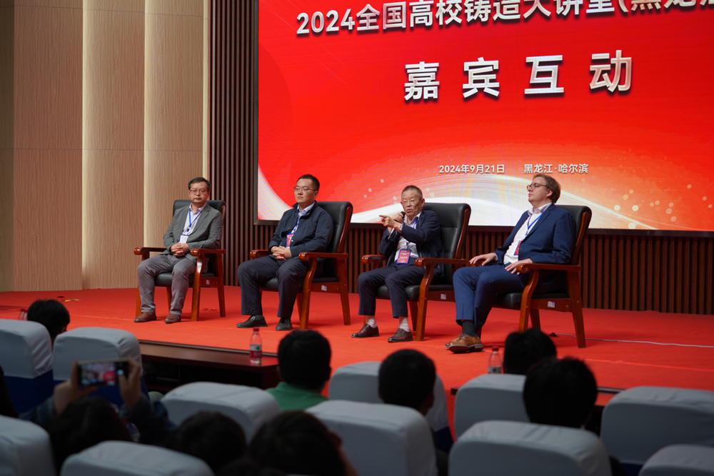 来自大连亚明汽车部件股份有限公司CEO方建儒做了《一体化压铸模具及压铸工艺核心技术》报告、MAGMA科技有限公司大中华区总经理Moritz Weidt博士做了《MAGMA Stands For Future:Comprehensive Optimization Of The Modern Foundry》的报告、专业优秀毕业生代表——中国航发东安发动机有限公司铸造专家陈彦宏做了《铸基础、造未来——有为才有位》的报告、上海汽轮机厂铸造总师吴铁明《铸造是强国立国之本——解析我国铸造的今天与未来》的报告。通过四位专家报告,广大师生更加深入了解和认识到铸造专业、材料专业在国家工业领域的重要地位、行业发展现状和未来发展趋势以及对铸造、材料专业人才的迫切需求。报告结束后,进入嘉宾与学生互动环节,现场嘉宾针对学生们的提问给予了解答。