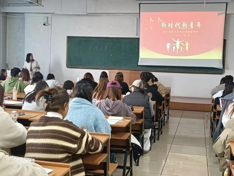 25日中午,外国语学院党委组织员阚锴为培训班学员讲授“看社会热点思考如何做新青年”专题党课。