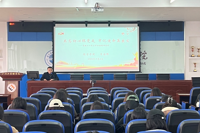 培训中,学院党委书记周长群以“党的二十届三中全会精神宣讲”为主题,向全体学员讲述党的二十届三中全会的历程和重大意义,讲解习近平总书记在全会上的重要讲话精神,阐释进一步全面深化改革的总体部署。帮助全体学员深刻领会了会议精神,增强了政治判断力、政治领悟力、政治执行力,坚定了听党话、跟党走的政治信念。他强调,新时代的青年大学生肩负着国家未来的希望与重任,必须自觉学习党的理论知识,深入了解党的宗旨、纲领和纪律,这不仅是个人信仰的体现,更是对党和人民事业的忠诚承诺。希望同学们在推进强国建设、民族复兴伟业中展现青春作为、彰显青春风采、贡献青春力量,奋力书写为中国式现代化挺膺担当的青春篇章。