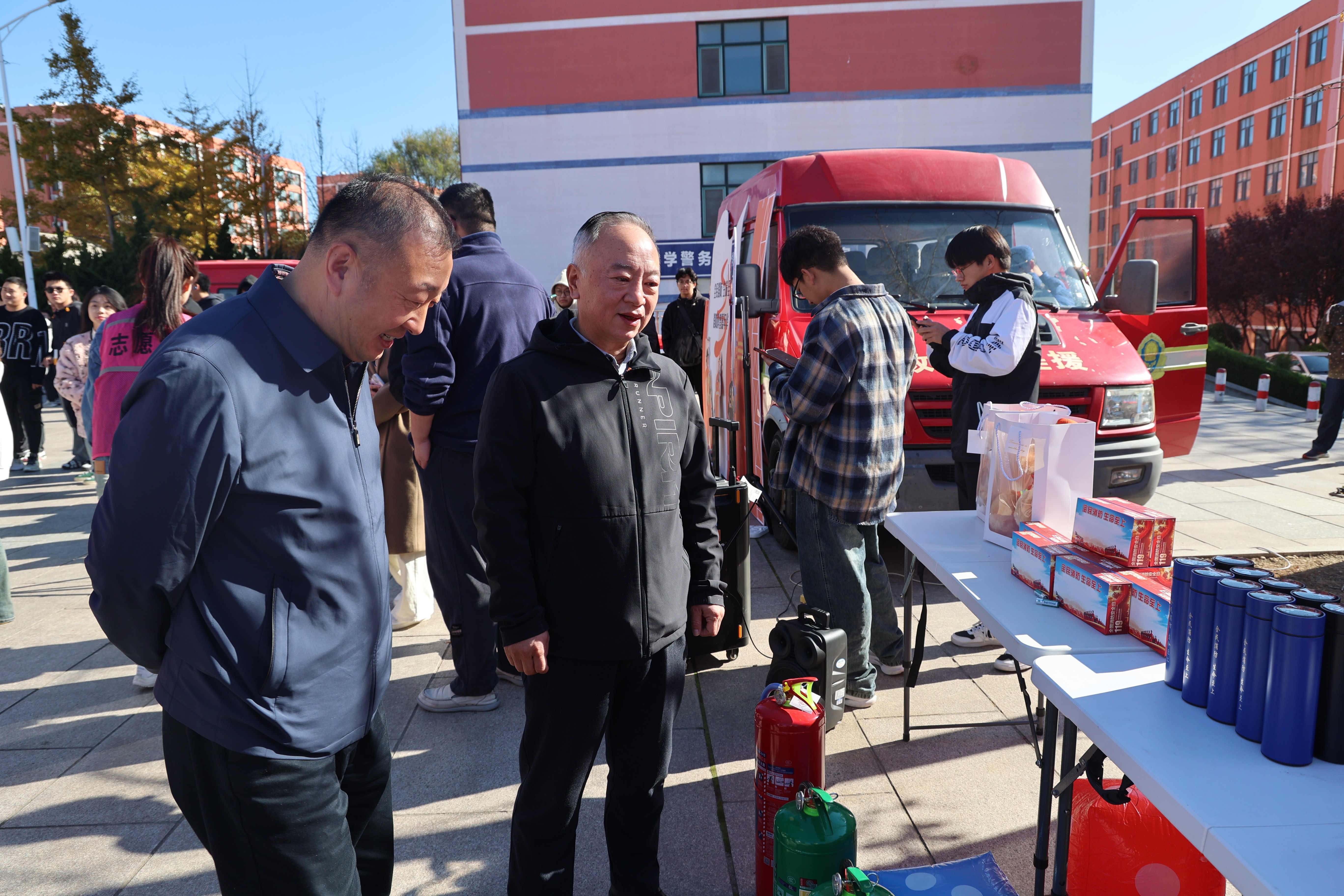 11月5日,荣成市消防救援大队和荣成学院在悦海广场共同举办“消防嘉年华”活动。荣成学院院长段宏伟、副院长刘云峰参加了活动。南山路消防救援站消防员,森林消防中队队员重装列阵、现场对消防知识答疑解惑,学院社自委组织50余名工作人员参与保障活动。