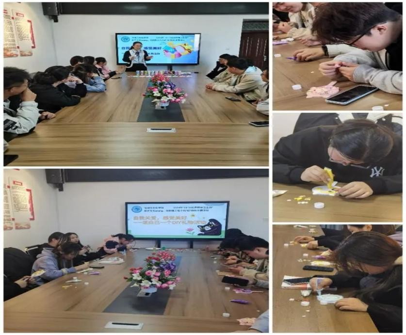 材料科学与化学工程学院充分发挥美育丰富精神、温润心灵的独特作用,举办了2024年“10·10世界精神卫生日”之第一届美育润心心理手工DIY创作活动。材化学院以“巧手繁花young 我和理工有个约‘绘’”为主题,创新开展“创意点亮‘心’生活”“画为心声,爱有回响”“自我关爱,感受美好——送自己一个DIY礼物活动”三项活动。不仅让学生释放了精神压力,更是体验了别样精彩,收获了心理能量。