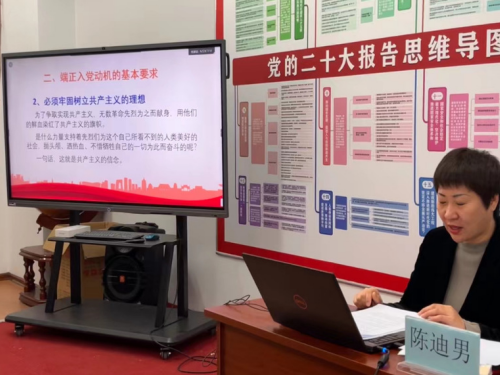 10月17日18:00,马克思主义学院党委副书记陈迪男在新主楼E1604会议室为学生、教工入党积极分子开展了“端正入党动机,争取早日加入党组织”为主题的党课培训。