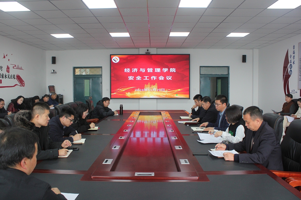 为深入贯彻落实学校2024年度安全工作会议精神,11月29日,经济与管理学院召开了年度安全工作会议,学院领导班子、各系(办、中心)主任和书记、全体学生工作人员和行政管理人员参加了会议,会议由副院长王卫主持。