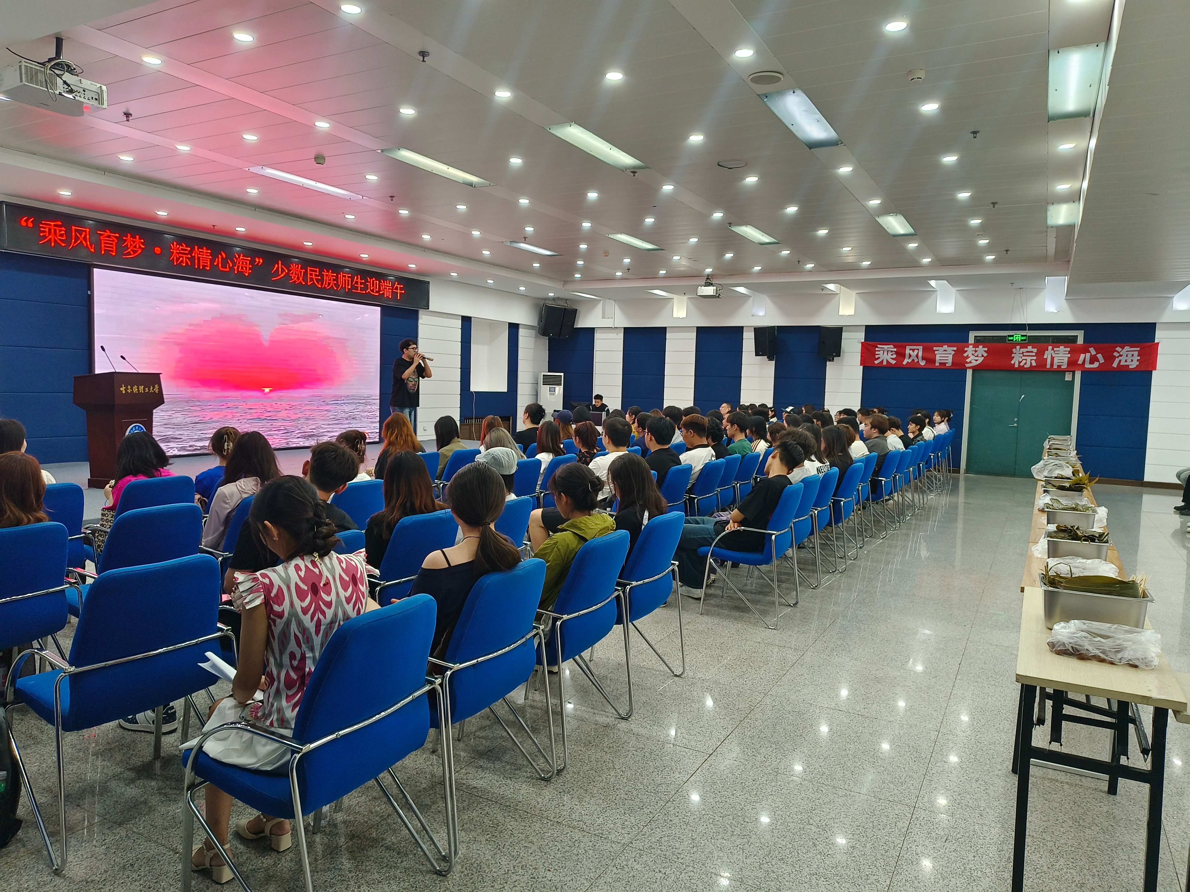 为深入学习贯彻习近平总书记关于弘扬中华优秀传统文化的重要指示精神,推进学校民族团结进步教育高质量发展。5月29日上午,学校在西区1号教学楼多功能厅举办“乘风育梦·粽情心海”少数民族学生迎端午活动。党委统战部副部长王莉娟、党委学生工作部 大学生就业服务中心班子成员、党委统战部工作人员、少数民族学生专职辅导员及80余名各民族学生代表参加活动。活动由“石榴籽”工作室学生骨干金融22-1班热伊塞·阿不旦力木主持。