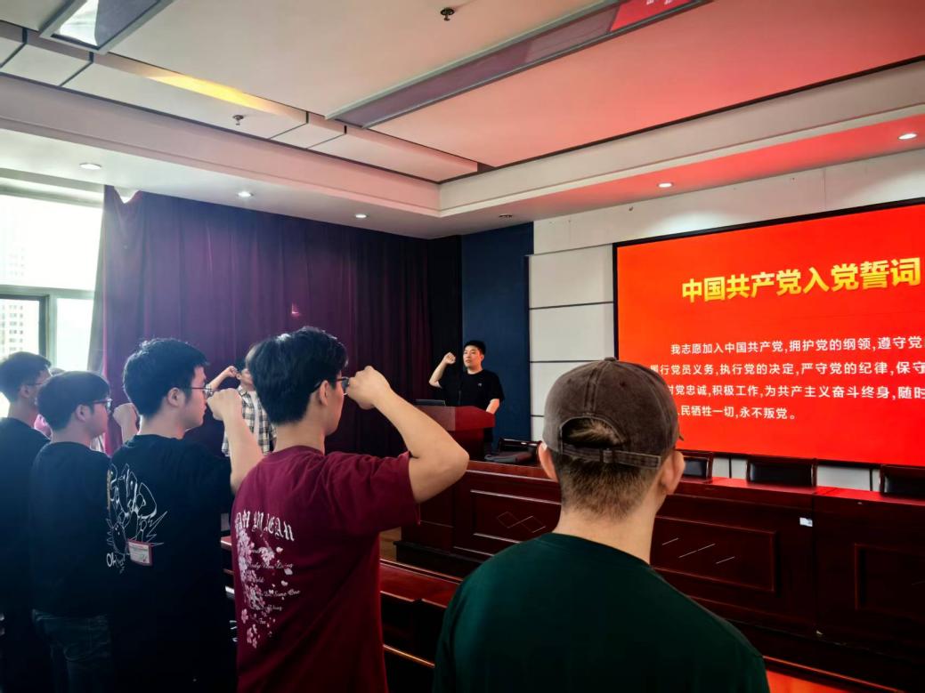 毕业班辅导员于牟金泽带领全体毕业生党员重温入党誓词。在鲜红的党旗前,毕业生党员们整齐列队,庄严地举起右手,握拳宣誓。一句句铿锵有力的誓言,再次点燃了毕业生党员们心中的激情,让他们回想起入党时的庄严承诺和坚定决心。通过重温入党誓词,毕业生党员们更加深刻地认识到作为一名党员的责任与使命,纷纷表示将在今后的工作和生活中,时刻以入党誓词为指引,践行对党的庄严承诺。
