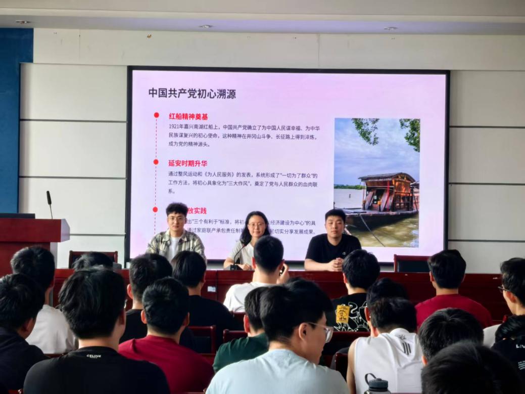 毕业班辅导员刘书齐以“永葆初心,扬帆起航 —— 做新时代的青春追梦人”为主题,为学生们带来了一堂生动的主题党课。刘老师从学生们的校园经历出发,回顾了大家在大学期间的成长与进步,引导毕业生党员思考如何将在学校培养的党性修养与专业素养融入到未来的工作和生活中。她激励学生们要保持积极向上的心态,在面对困难与挑战时,不退缩、不放弃,以青春之我、奋斗之我,为实现中华民族伟大复兴的中国梦贡献青春力量。通过这两堂党课,毕业生党员们进一步坚定了理想信念,明确了前进方向,为即将步入社会做好了充分的思想准备。
