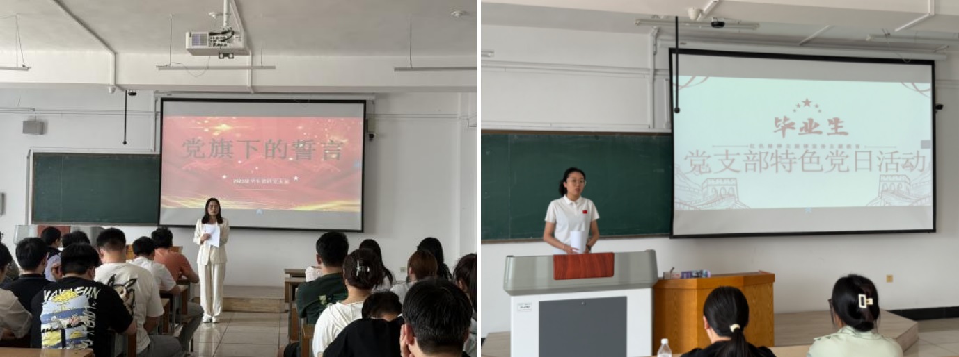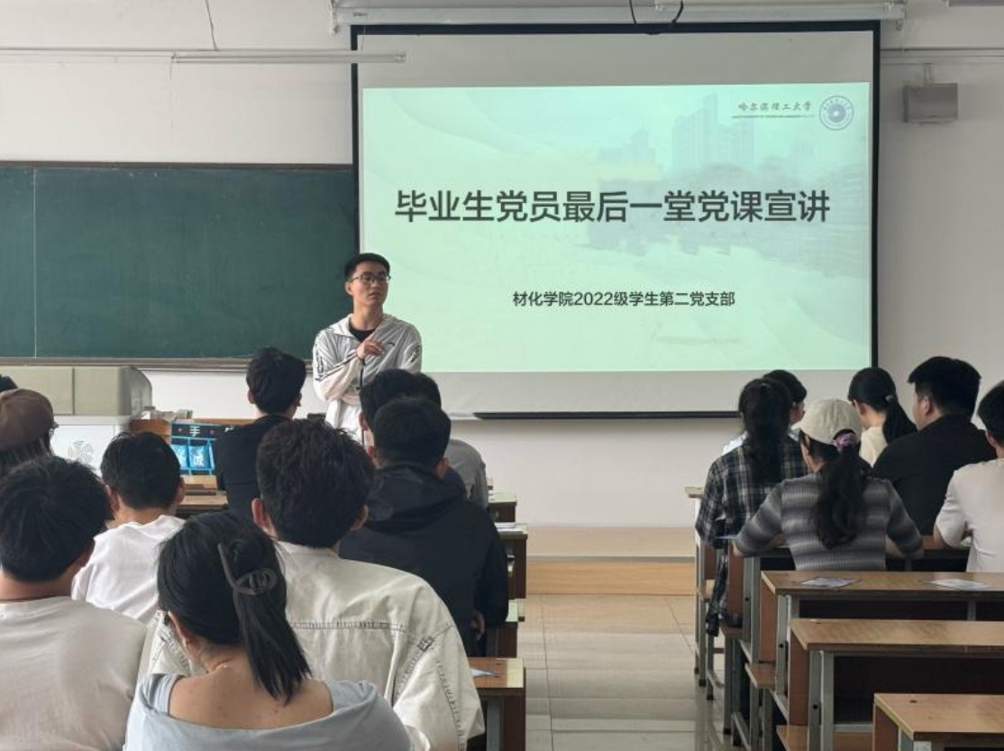 全体学生党支部书记为毕业生党员讲授最后一堂党课。党课内容丰富,紧密结合当下时代背景和毕业生党员即将步入社会的实际情况,从坚定理想信念、严守党的纪律、践行社会责任等角度展开深入阐述。学生党支部书记武翠、边同海、陈俊杰、赵书玉、刘智睿指出,毕业生党员们无论走到哪里,要时刻牢记党员身份,保持对党忠诚,积极发挥先锋模范作用,在各自的岗位上发光发热,为党和国家的事业添砖加瓦。