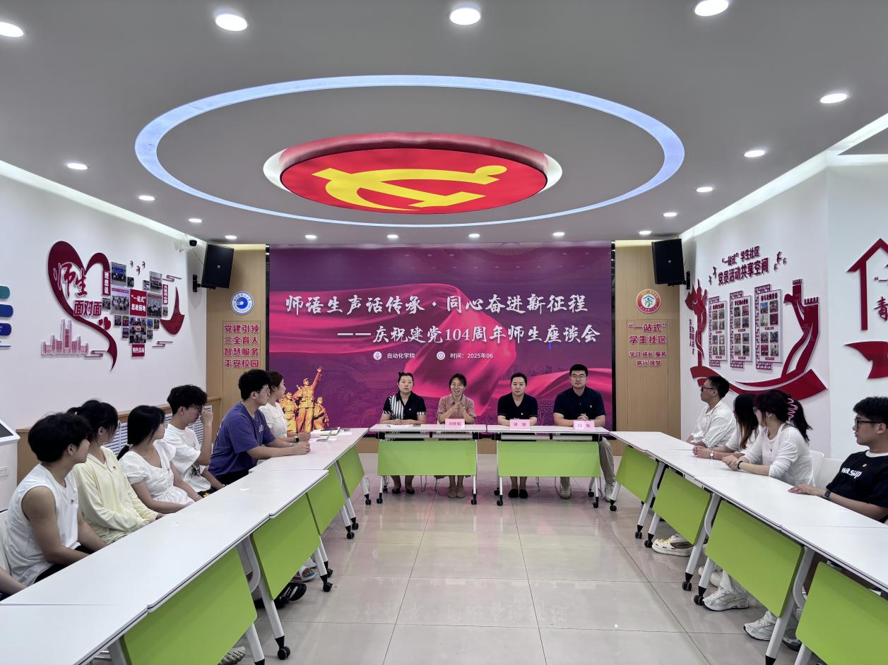 6月27日,在喜迎中国共产党成立104周年之际,自动化学院在学生一站式社区成功举办了“师语生声话传承·同心奋进新征程”师生座谈会。学院党委书记张颖、副书记刘桂娟、副院长闫勉和辅导员与学生党员代表齐聚一堂,共同追溯党的光辉历程,赓续红色血脉,凝聚奋进力量。座谈会由学院团委书记黄林萱主持。