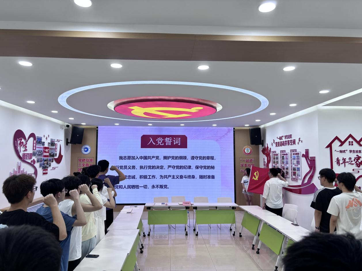 国歌嘹亮砺初心,誓言铿锵铸忠诚。伴随着雄壮激昂的《义勇军进行曲》,全体师生肃立齐唱,铿锵的旋律激荡着每一位党员的赤子之心。在学院党委副书记刘桂娟的带领下,全体党员面向鲜红党旗庄严宣誓,字字千钧的入党誓词响彻会场,彰显着自动化学院师生党员永葆政治本色的坚定信念。
