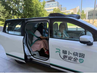 实践团成员体验百度“萝卜快跑” 实践团在腾讯北京总部合照