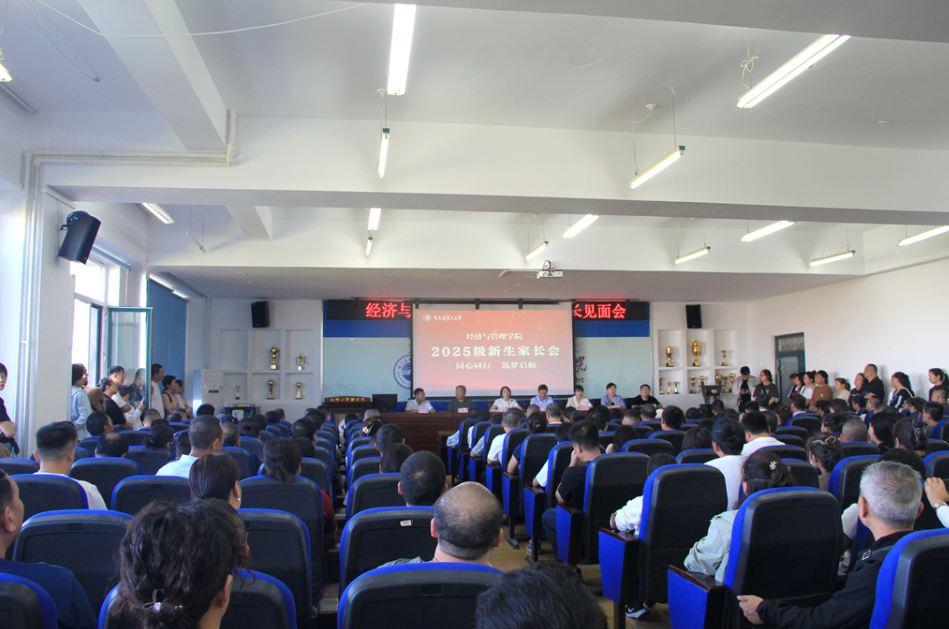 金秋九月,丹桂飘香。为搭建家校沟通桥梁,凝聚育人共识,助力新生平稳度过大学适应期、科学规划未来发展,2025年9月8日14时,经济与管理学院于南区1号楼740学术报告厅召开2025级新生家长见面会。学院院长王莉静、党委书记周长群、副院长姚锋敏、董媛媛,新生辅导员初春艳、魏宏达与2025级新生及家长齐聚一堂,共话育人心声,共绘成长蓝图。会议由学院党委副书记郭宝鹏主持。
