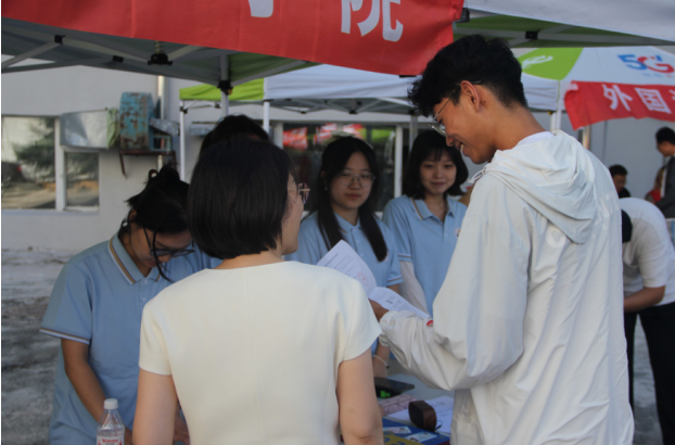自新生报到工作启动以来,经济与管理学院迎新集中宣传点始终是南区校园里最热闹、最温暖的“打卡地”之一。在学院领导、全体学生工作人员、团委、学生(研究生)会、青年志愿者协会的精心组织策划下,各部门齐心协力,以饱满的热情和专业的服务,为新生顺利报到保驾护航。