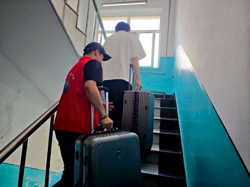 志愿者们身着统一服装,面带热情笑容,主动上前接过新生的行李,耐心引导完成“身份核验— 资料提交—一卡通领取—宿舍指引”全流程。“同学,这边请,你的宿舍在 四公寓,我陪你过去!”“这是你的一卡通,有疑问随时找我们”一句句贴心话语,让初入校园的新同学刚踏进校园,便感受到家一般的温暖。