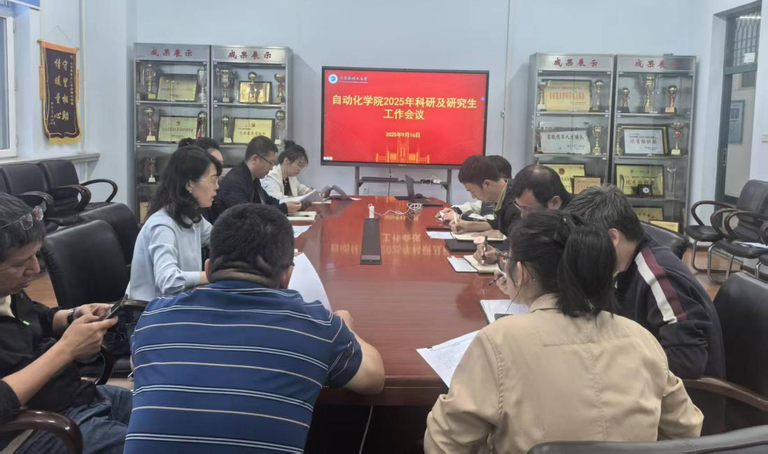 为统筹推进学院科研与研究生培养工作,进一步明确本学期学院学科发展目标与重点任务,9月16日,自动化学院在新主楼E1412会议室召开2025年科研及研究生工作会议。学院党委书记张颖、院长胡军、党委副书记刘桂娟、副院长李东洁,以及各系部(中心)主任、科研副主任、辅导员和科研秘书邓立为、徐军、陈晨、岳中哲、于浍、王海滨、杨宁、邵婷婷出席会议。会议由副院长李东洁主持。