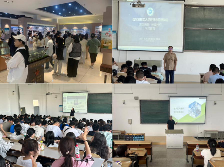9月13日上午,初春艳老师组织全体新生分批次参观校史馆,通过校史沿革讲解、珍贵实物展览和典型事迹介绍,深化学生对学校发展历程和办学传统的理解,增强爱校荣校意识。下午,李知渊和梁禹淇老师开展“新纪律·法规校纪教育”,系统解读学生管理规章制度、学术规范要求、考试纪律和校园行为准则,强化学生的规则意识和法治观念。高铭老师讲授“新理想·理想信念教育”,结合国家发展需要和专业使命责任,引导学生树立远大志向,坚定理想信念,勇担时代重任。